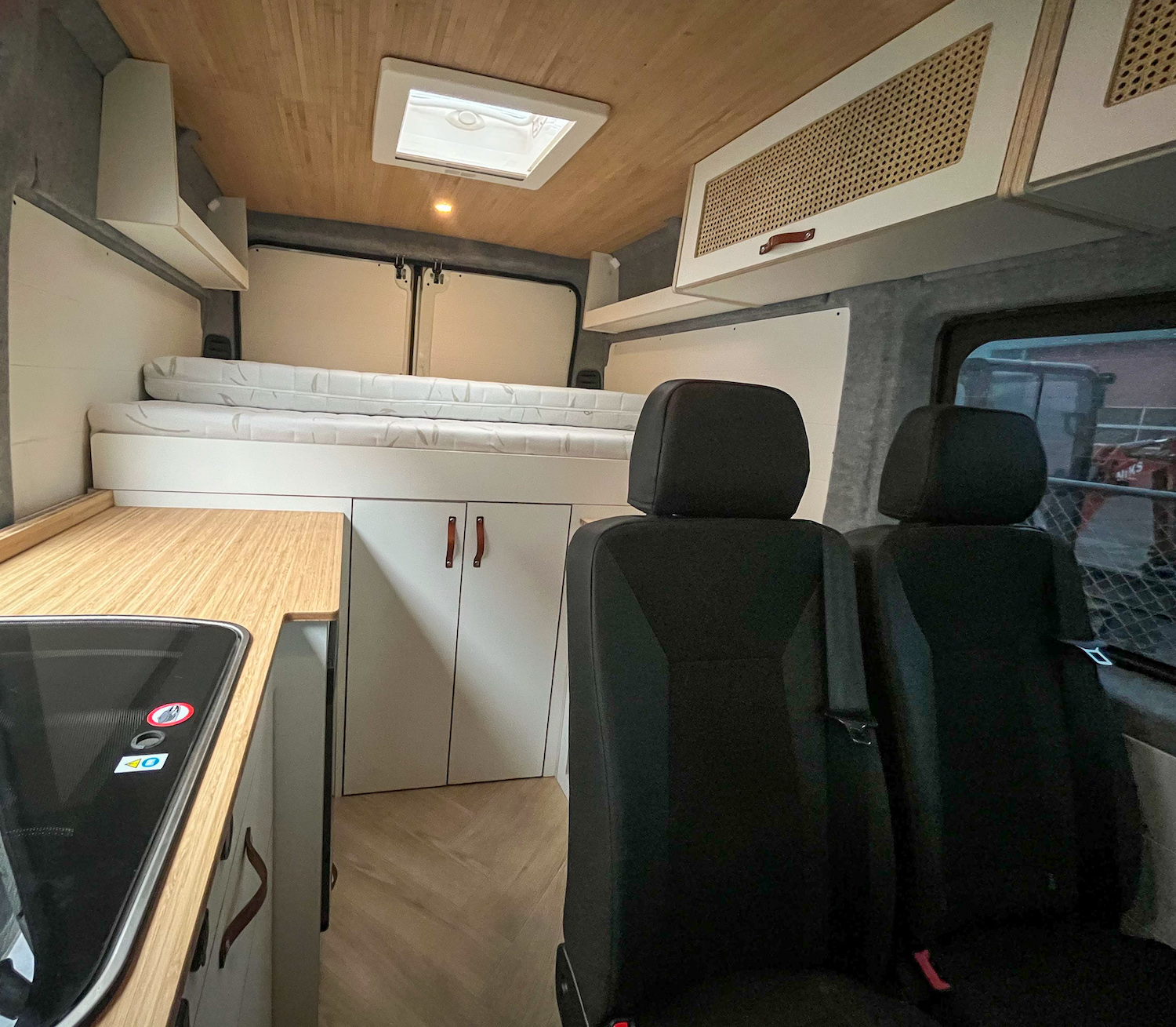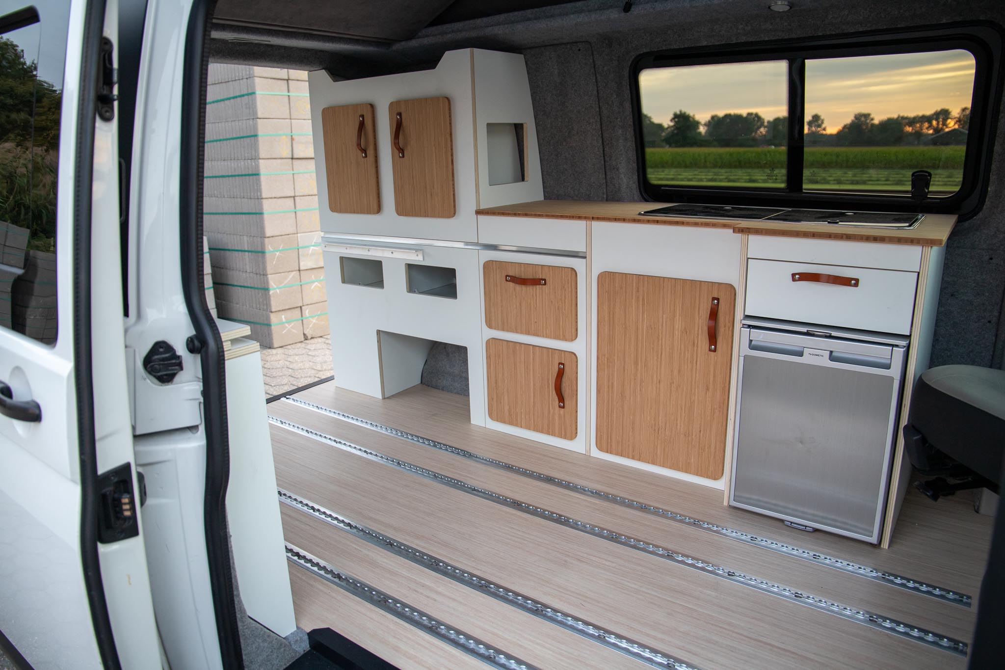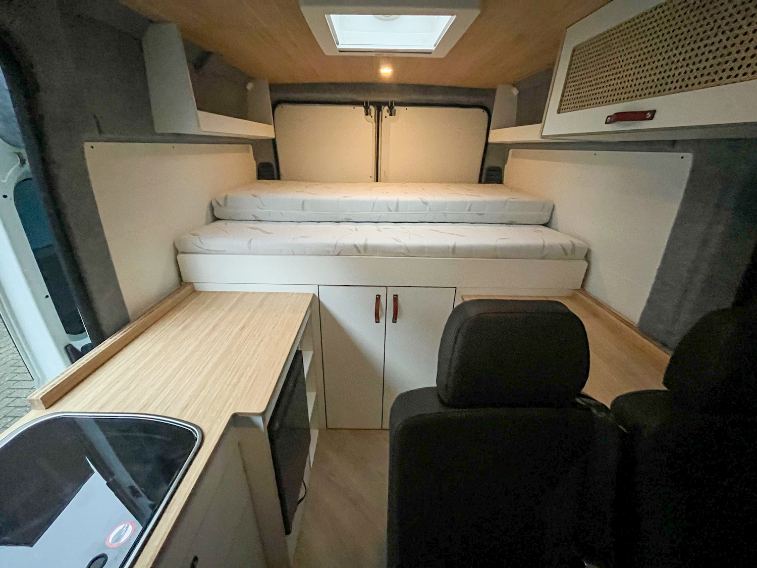 Bouwjaar 2017, en 145k km, interieur NIEUW. Interieur met lichte en moderne kleuren en materialen: lichtgewicht multiplex met wit HPL i.c.m. bamboe met de hoge afwerking standaard die je van ons mag verwachten.