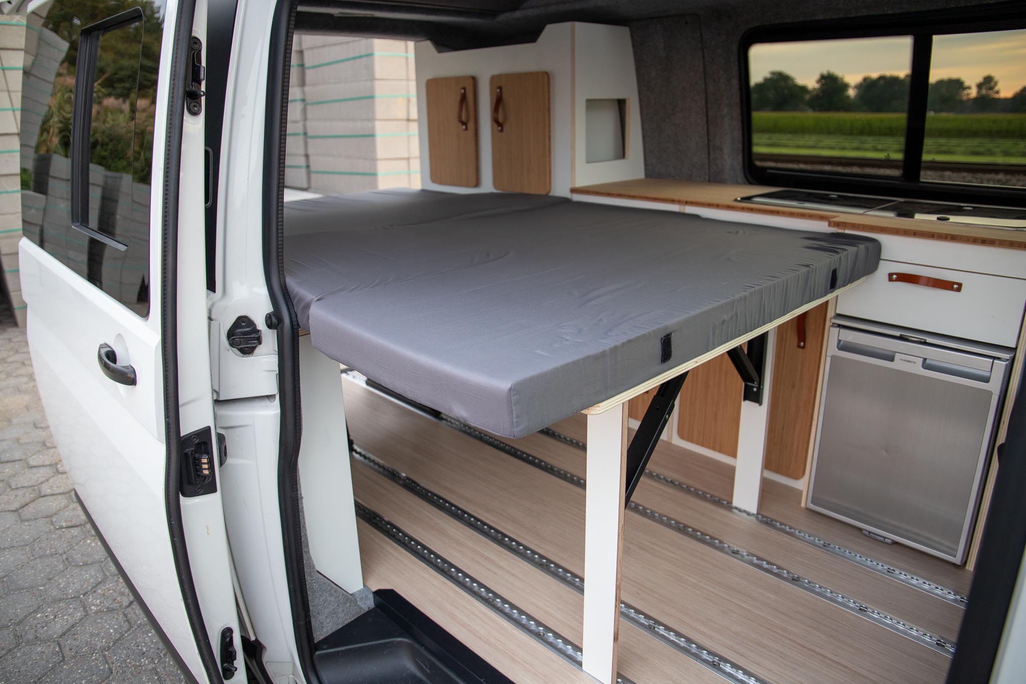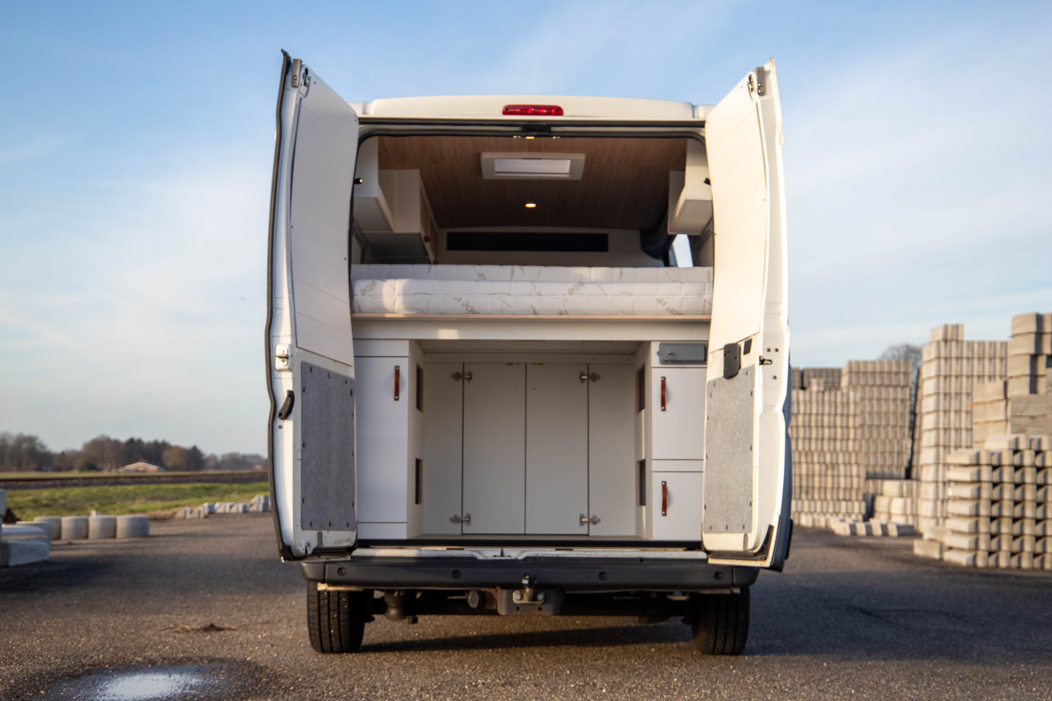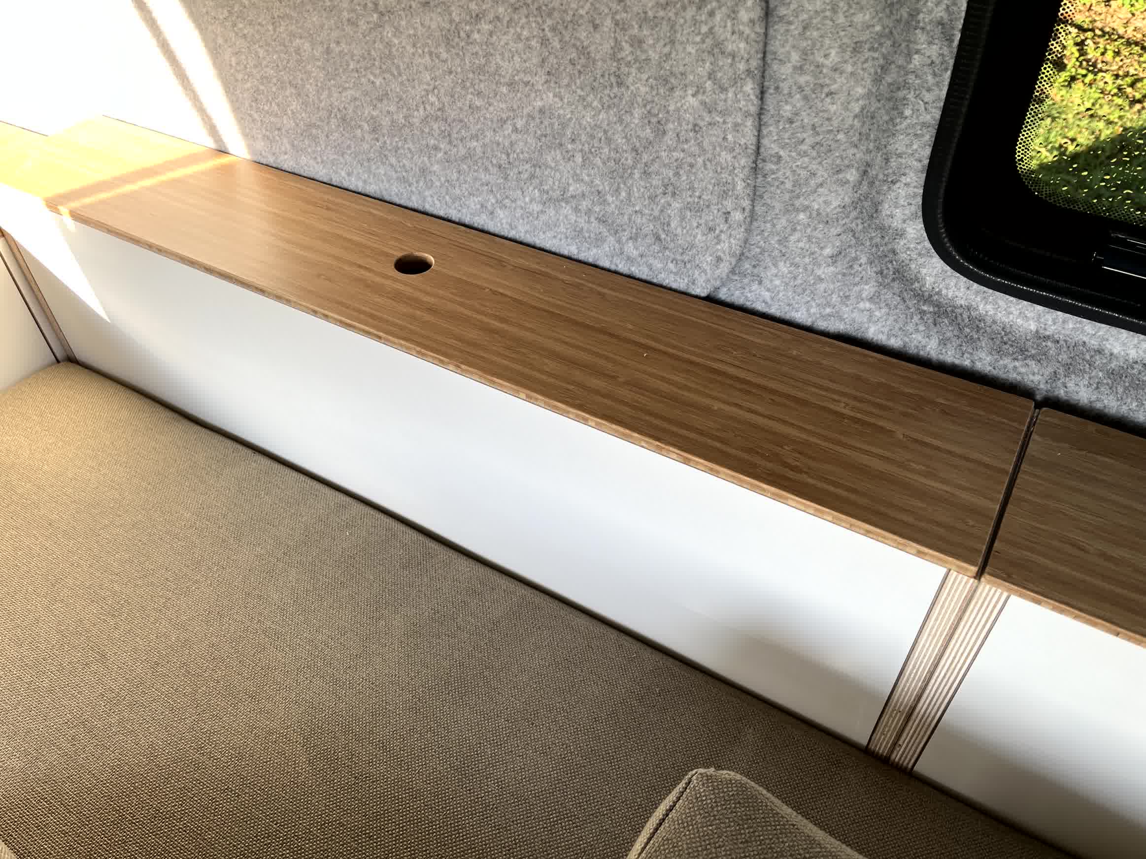 Bouwjaar 2017, en 145k km, interieur NIEUW. Interieur met lichte en moderne kleuren en materialen: lichtgewicht multiplex met wit HPL i.c.m. bamboe met de hoge afwerking standaard die je van ons mag verwachten.
